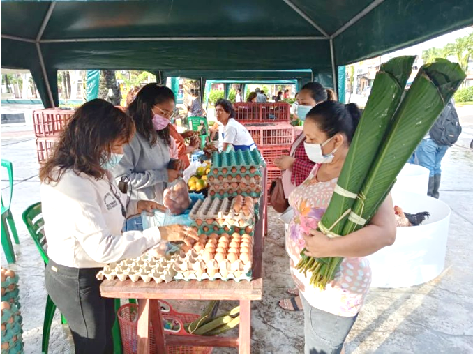 Aquí encontrarán las sabrosas gallinas criollas e insumos para los juanes como huevo, hoja de bijao, soga para atar el juane, guisador, aceituna y arroz, a precios de productor.