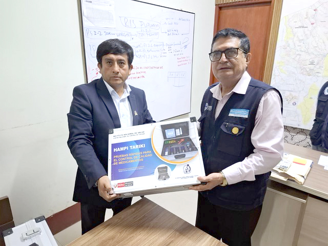 El “Hampi Tariki”, cuyo nombre en quechua significa “el medicamento te guía”, es una herramienta portátil que permite detectar en campo medicamentos falsificados o de baja calidad mediante pruebas rápidas físicas y químicas. Esta tecnología constituye una alerta sanitaria temprana que fortalece la intervención oportuna de las autoridades antes de que los productos lleguen al consumo público.
