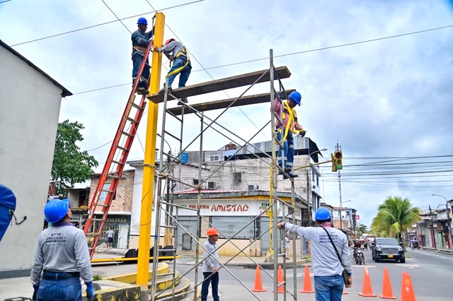 La Municipalidad de Maynas, a través de la Gerencia de Tránsito y Transporte Público, continúa avanzando en la mejora de la infraestructura vial y la seguridad de los transeúntes. En un esfuerzo sostenido por garantizar la movilidad segura y eficiente de la ciudadanía, se ha realizado un cambio total de la estructura de los postes del semáforo en la calle 09 de Diciembre con Elias Aguirre, debido al deterioro causado por las inclemencias del clima. Paralelamente, se llevó a cabo un mantenimiento completo del semáforo para asegurar su óptimo funcionamiento.