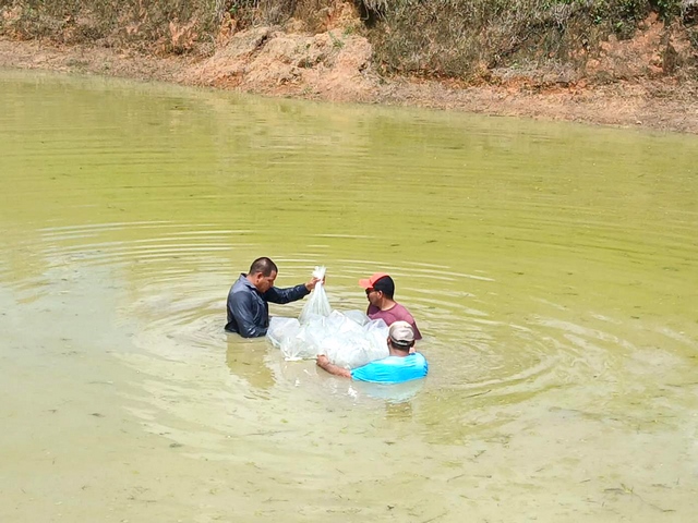 Las poslarvas de gamitana llegaron desde Iquitos y permanecerán por aproximadamente 25 días en un estanque de levante o engorde en Soplín Vargas, para luego ser distribuidas como alevines a las familias beneficiarias.
