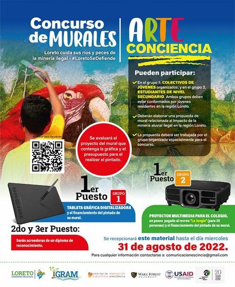 - Se premiará a jóvenes loretanos que presenten propuestas artísticas que difundan la importancia de nuestros ríos y los riesgos de la minería ilegal en Loreto.