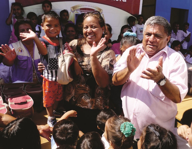 La autoridad edil hizo entrega de mochilas con útiles escolares al nivel inicial de la mencionada institución, gracias al Proyecto «Estudia Ñañito 2016», el cual consiste en entregar mochilas a niños y niñas de bajos recursos en el distrito sanjuanino, a fin de brindarles facilidades en su proceso educativo, de tal manera que ellos puedan estudiar con empeño y dedicación. Este proyecto «Estudia Ñañito», se da en el marco de la problemática social por la que atraviesan las familias en condiciones de pobreza y pobreza extrema, siendo el objetivo erradicar los índices de deserción escolar, garantizar la matrícula gratuita y oportuna, pero sobre todo realizar un adecuado seguimiento durante todo el año escolar a cada uno de los beneficiados. Es así que se tiene programada la entrega de más de 1000 mochilas con útiles escolares a los niños beneficiarios de este proyecto, los mismos que ya se encuentran matriculados y asistiendo a sus respectivos centros educativos. Los niños y niñas del nivel inicial también recibieron materiales didácticos que serán para desarrollar su actividad psicomotriz.