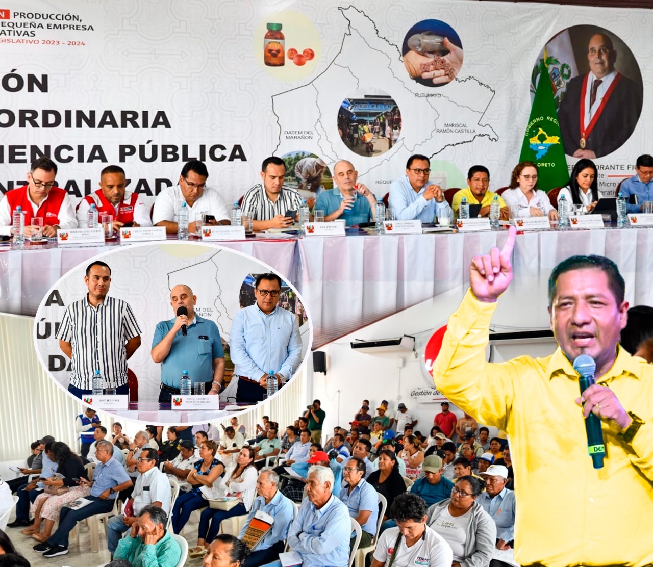 El gobernador regional de Loreto Dr. René Chávez Silvano, junto al ministro de la Producción Sergio Gonzáles Guerrero, congresistas Jorge Morante (presidente de la comisión de Producción, Micro y Pequeña Empresa y Cooperativas) y José Jerí Oré (presidente de la comisión de presupuesto), participó de la XI sesión extraordinaria de esta comisión y de la VI audiencia pública descentralizada del Congreso de la República.