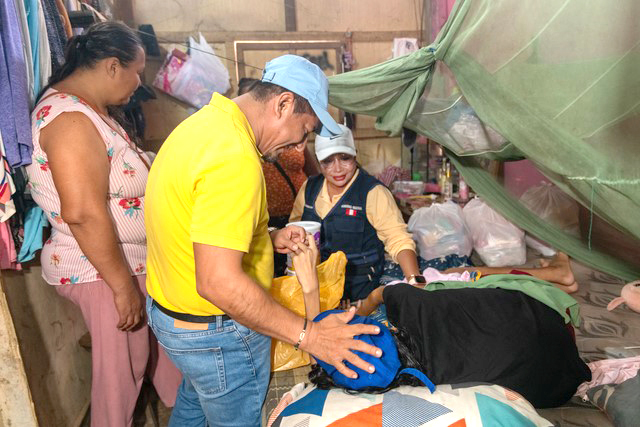 Hasta el domicilio del adolescente llegó el gobernador regional de Loreto, René Chávez Silvano, para expresar personalmente su respaldo. En la visita, entregó una silla de ruedas, víveres, ropa y leche como apoyo inmediato, al tiempo que recogió las preocupaciones de la familia respecto a la continuidad del tratamiento. Su presencia permitió establecer un contacto directo y articular la respuesta institucional desde el lugar de los hechos.