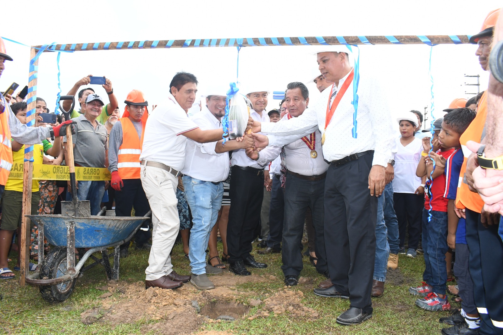 El alcalde Kahn, expresó muestras de afecto y bienvenida, al gobernador regional, por el inicio de la obra “Polideportivo 27 de Octubre”, asimismo, le manifestó, las múltiples necesidades que tiene la provincia, y que se priorice el financiamiento del proyecto de agua potable y desagüe de Caballo Cocha, así, también la construcción de la carretera (Caballo Cocha – Palo Seco – Chimbote), que la municipalidad en años anteriores, ya transfirió la Unidad Ejecutora al gobierno regional.