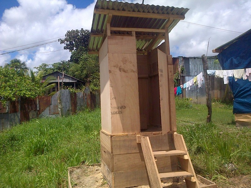 Un “baño ecológico” consiste en una taza conectada al sistema de alcantarillado con una infraestructura rústica que no afecta al ambiente. Estas letrinas están siendo construidas en cada uno de los albergues instalados por el GORE Loreto en los distritos afectados por las inundaciones como Punchana, San Juan Bautista, Iquitos y Belén. Por ello, los trabajadores del GORE Loreto están acudiendo a estos sectores para construir los baños en la brevedad posible y evitar cualquier foco infeccioso por falta de desagüe.