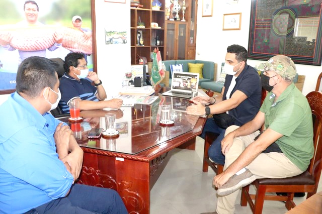 Los detalles fueron abordados en reunión sostenida entre el gobernador Elisbán Ochoa, el gerente de Desarrollo Social, Oscar Llapapasca, y los reconocidos cineastas ganadores de los premios nacionales e internacionales, Dorian Fernández y Javi Velásquez, directivos de Audiovisual Filmes, con quienes la autoridad regional expuso su voluntad política de incentivar la producción cinematográfica con la finalidad de promocionar las bondades de nuestra región.
