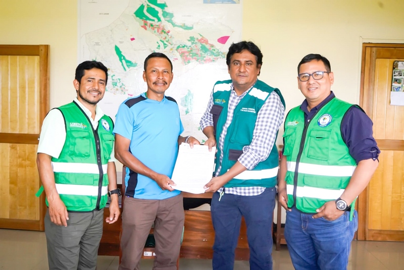 El equipo de profesionales del Proyecto Aguaje y los representantes de las comunidades Nativas de Puerto Huamán y Sabalillo participaron de la firma y recepción de la Declaración de Manejo para el aprovechamiento del fruto de la palmera de aguaje, otorgado por la Gerencia Regional de Desarrollo Forestal y Fauna Silvestre.