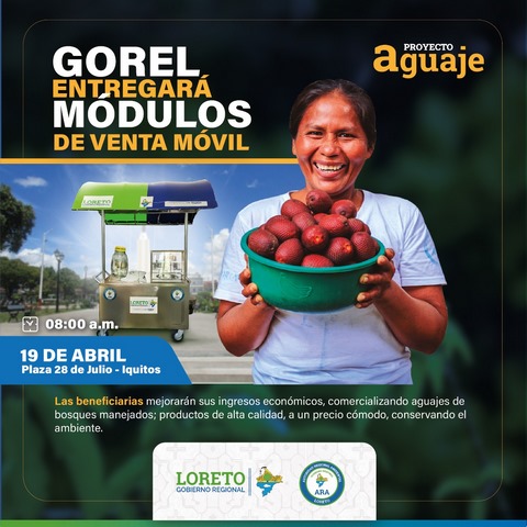 El Gobierno Regional de Loreto a través de la Autoridad Regional Ambiental ARA- Loreto realizará la entrega de módulos de venta móvil a las beneficiarias de la «Asociación de Expendedoras de Aguaje» de la ciudad de Iquitos, con el objetivo de cambiarles sus vidas ya que con éste módulo, las beneficiarias podrán incrementar sus ingresos económicos y por ende mejorar su calidad de vida para toda su familia.