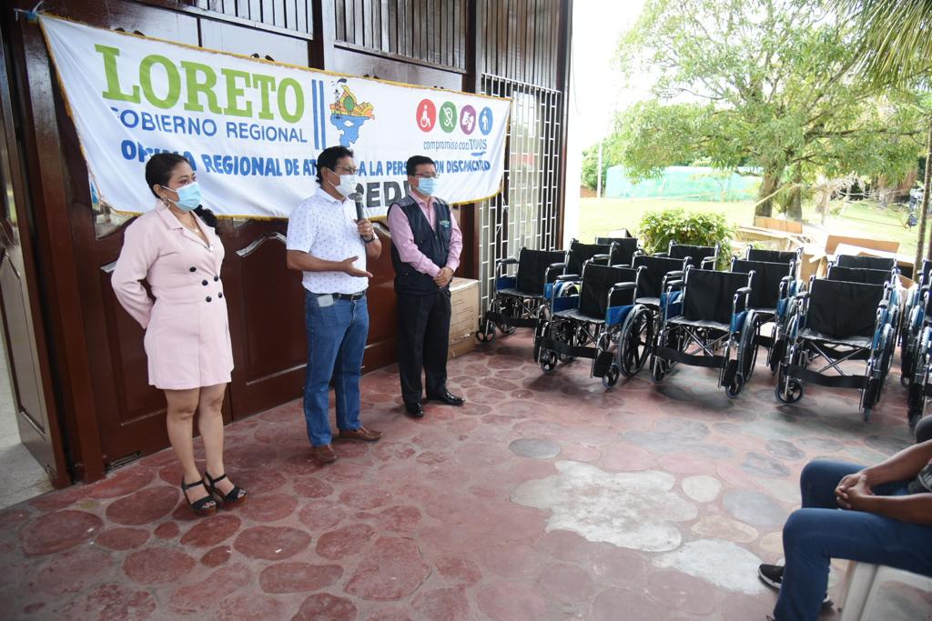 En horas de la mañana, el gobierno regional de Loreto, mediante la Oficina Regional de Atención a las Personas con Discapacidad (OREDIS) donó 55 sillas de ruedas a personas con discapacidad de diferentes localidades de la región.
