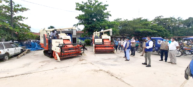 A fin de reforzar el proceso de reactivación de la economía en la región, el gobernador Lic. Elisban Ochoa Sosa, entregó dos cosechadoras de arroz a la dirección regional de Agricultura de Loreto/DRAL, para ser distribuidas a las provincias de Alto Amazonas y Maynas, en beneficio de los agricultores que participan del proyecto “Arroz, Maíz y Frijol Caupi”.