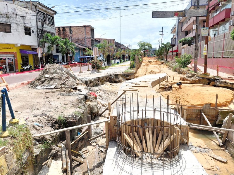 El asfaltado de Iquitos es un proyecto integral que contempla en lugares que amerita realizar, bacheos, también está la construcción de un nuevo sistema de alcantarillado de 2.20 metros de ancho por 1.20 metros de alto en la avenida Cáceres desde la calle Tacna hasta la calle Castilla, estos trabajos debe concluir el hasta la quincena de abril 2026, de esta forma se contribuye con la salud de la población de esta parte de Iquitos.