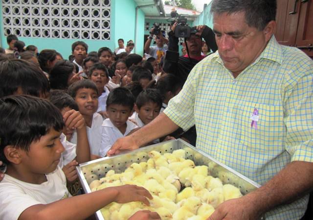 De esta manera, el mismo alcalde presenció el primer nacimiento de los pollos de corral que son producto de estos módulos de crianza de aves menores. Los primeros colegios que registraron significativos avances en la reproducción y nacimiento de las aves fueron la I.E. N° 60024 «San Juan, I.E. 601374 «Simón Bolívar» e I.E. «Corazón de Jesús» del AH «El Terminal». Los más emocionados fueron los niños que vieron el fruto de su constante cuidado, amor y trabajo, así como los profesores que no evitaron mostrar su satisfacción por el nacimiento de los pollitos.