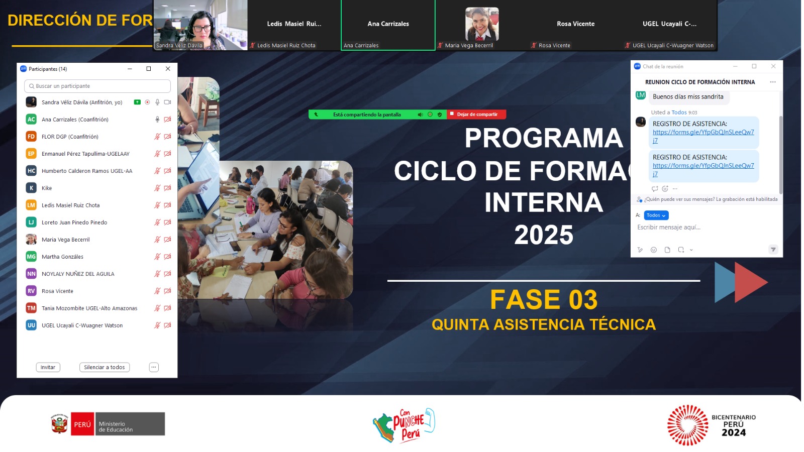 Los días 2 y 3 de julio se llevó a cabo la quinta asistencia técnica virtual dirigida a los equipos pedagógicos de las UGEL Maynas, Requena, Alto Amazonas-Yurimaguas y Ucayali-Contamana. Esta jornada permitió avanzar en la implementación del CFI en la región Loreto, con énfasis en el trabajo colaborativo y la consolidación de comunidades profesionales de aprendizaje.