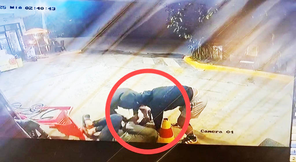 Las imágenes muestran cómo tres sujetos llegaron al servicentro a bordo de un mototaxi. En cuestión de segundos, dos de ellos descendieron y se abalanzaron directamente contra el trabajador, quien se encontraba sentado. Sin advertencia alguna, fue arrojado al suelo, golpeado brutalmente y encañonado con un arma de fuego, en una escena que refleja la total ausencia de control y vigilancia en la zona.