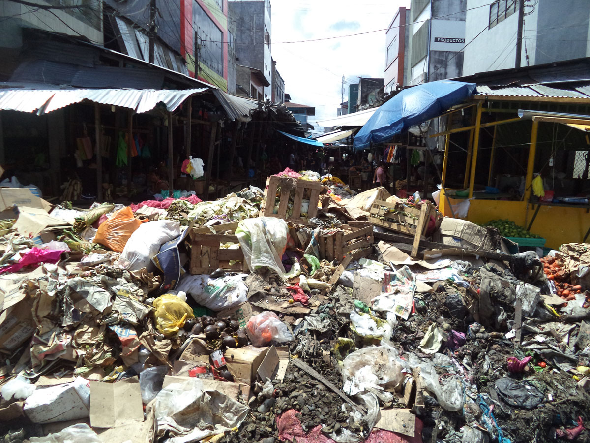 llegar al mercado de Belén está llena de basura. Los compradores no pueden caminar normalmente por ese lugar. La acumulación es de tal magnitud que los viandantes tienen que cubrirse con mascarillas para evitar los fétidos olores que emanan de los desperdicios donde perros callejeros, gallinazos, millones de moscas y ratas han encontrado una fuente inagotable para saciar su voraz apetito. La cantidad de basura en esta zona de la ciudad aumenta minuto tras minuto que pasa. Luego de la fiesta navideña, está llegando a ser cada día más grande, puesto que los desperdicios que se arrojan diariamente ya no permite el pase de los motocarros y motos por ese populoso sector de la zona de Belén.