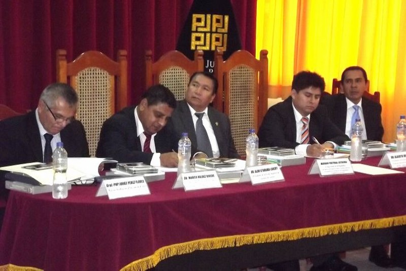 En esta Sesión Descentralizada de Evaluación y Seguimiento del Nuevo Código Procesal Penal en Loreto, participaron todas las instituciones que operan con el NCPP: Policía Nacional de Perú, cuyo general PNP en Loreto envío a su representante, Ministerio Público estuvo su titular Dr. Marco Antonio Valdez Hirene – Presidente de la Junta de Fiscales Superiores de Loreto, Ministerio de Justicia a través de la Defensoría Pública, cuyo director es el Dr. Carlos Máximo Navas Coronel y el Poder Judicial – Corte Superior de Justicia de Loreto.