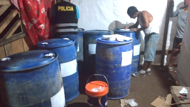 En efecto a las 8 y 15 pm la movilidad subió a toda velocidad río arriba sin ningún control policial. De eso nos percatamos y como junta vecinal nos organizamos también con la comunidad de Pisco. Logramos detener a la embarcación, pedimos permiso al dueño para inspeccionar y encontramos 14 cilindros de petróleo en el interior. A los 10 minutos llegaron los efectivos policiales diciendo que no habían podido actuar (en el control de la nave que llevaba el petróleo) porque habían estado patrullando los bares de la comunidad etc.