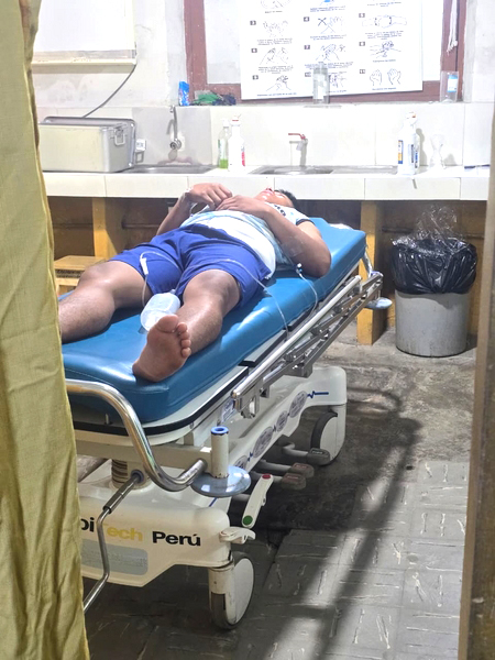 El herido fue custodiado por un policía, quien presta servicio en el PVF El Estrecho, mientras recibía atención médica debido a la lesión provocada por proyectil de arma de fuego, la cual comprometió la zona baja abdominal.