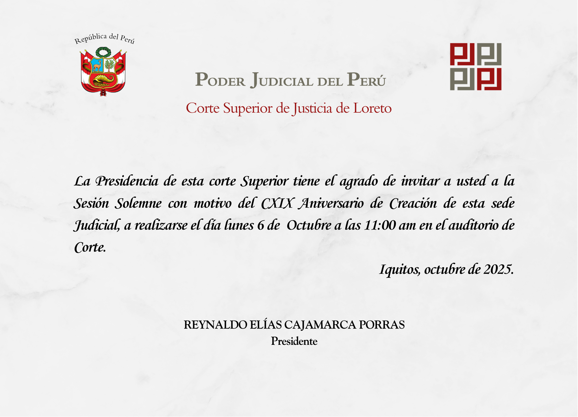 La Corte Superior de Justicia de Loreto reafirma su compromiso inquebrantable de impartir justicia con transparencia, eficiencia y responsabilidad, fortaleciendo la confianza ciudadana en el sistema judicial. Este compromiso se refleja en el esfuerzo constante por garantizar un servicio accesible, oportuno y basado en los principios de equidad y legalidad, contribuyendo así al fortalecimiento del Estado de Derecho y al desarrollo integral de la región de Loreto.