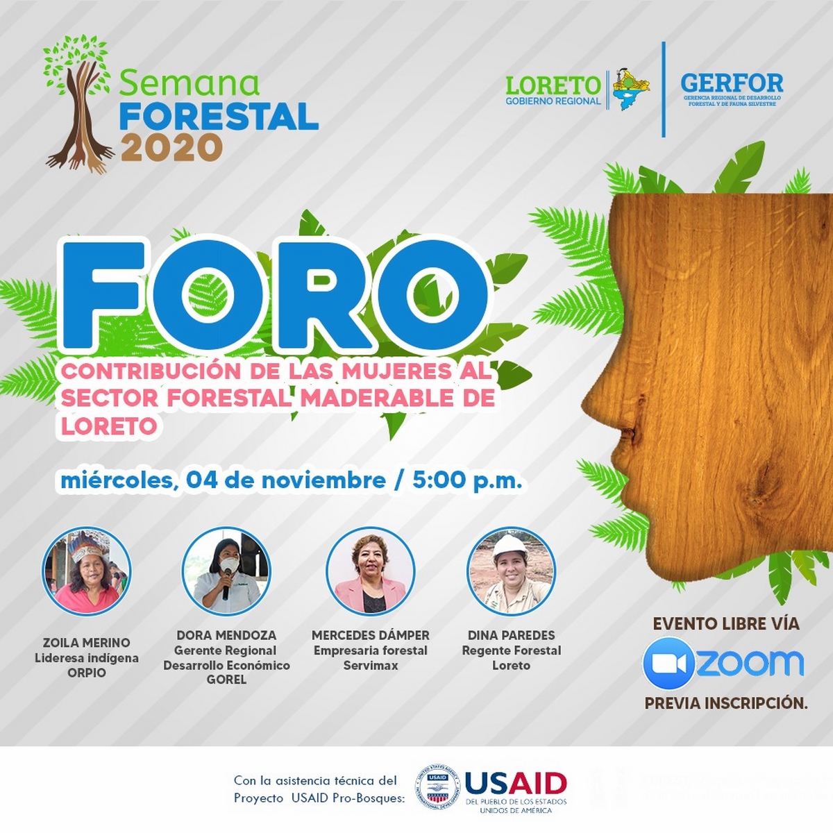 También se realizará el conversatorio “Contribución de las Mujeres al sector Forestal Maderable de Loreto”, a las 5:00 en transmisión vía Zoom, previa inscripción a través de https//bit.ly/34RCgH3, para todos los interesados.