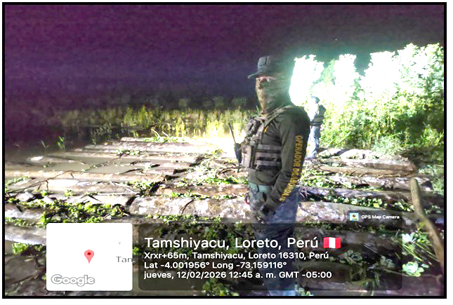 En un operativo de control y vigilancia fluvial, personal de la Unidad de Control Fluvial Río Tamshiyacu (UCF-254) intervino una embarcación artesanal tipo “peque-peque” que remolcaba un cargamento de madera presuntamente extraída de manera ilegal en el río Amazonas, en las inmediaciones de la localidad de Tamshiyacu, provincia de Maynas, región Loreto.
