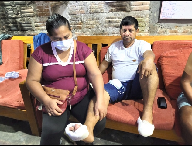 De acuerdo a la señora Olga Cardenas, su esposo, el señor Miguel Chuquipiondo, intentó auxiliar a sus hijos y producto de esto terminó con los pies en medio del fuego, “mi esposo quería auxiliarnos y bajar a mis hijos así que saltó y sus pies fueron directo al fuego tiene quemaduras de segundo grado”, indicó.