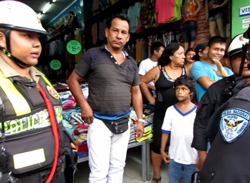 Al lugar llegó primero una policía femenina tras ser avisada por las personas de la zona que señalaron que querían linchar a una persona, luego llegaron agentes del escuadrón de emergencia, quienes prácticamente salvaron a este sujeto de ser agredido por la enardecida turba de comerciantes.