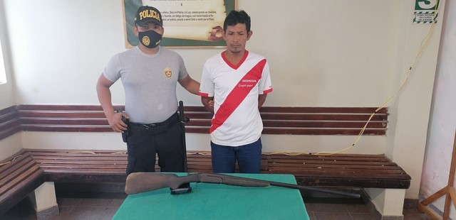 Ante estos hechos, los efectivos policiales procedieron a la intervención y detención de Rider Mozombite Ibaran (40) e incautando una escopeta (arma hechiza), sin cartucho por lo que procedieron a la formulación de la documentación respectiva para posteriormente ser trasladado hasta la comisaria de Nauta donde se realizan las diligencias de acuerdo a Ley con participación del representante del Ministerio Público de Nauta.