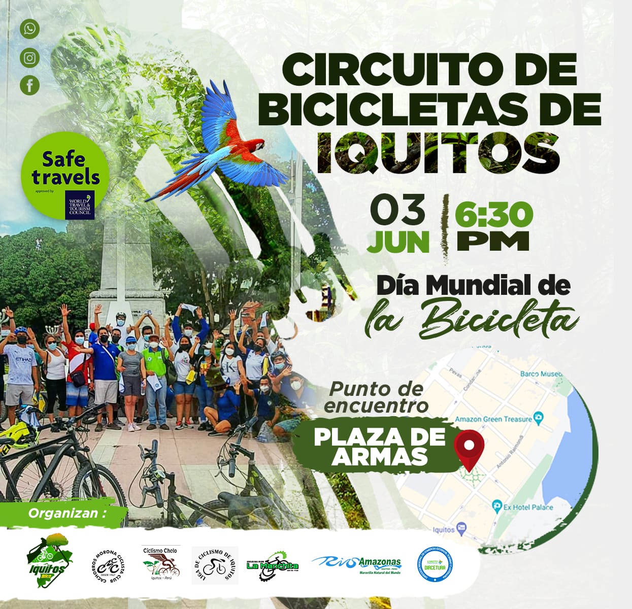 - Mañana jueves 3 de junio a las 6:30 pm., partiendo desde la plaza de Armas del distrito de Iquitos.