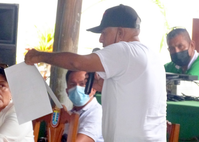 “Acá tengo en mis manos el informe técnico en el que se demuestra que acá tomamos agua contaminada con mercurio que sueltan las dragas ilegales al sacar oro de la cuenca del Nanay. Y no solo el agua, sino también peces contaminados que consume la población.