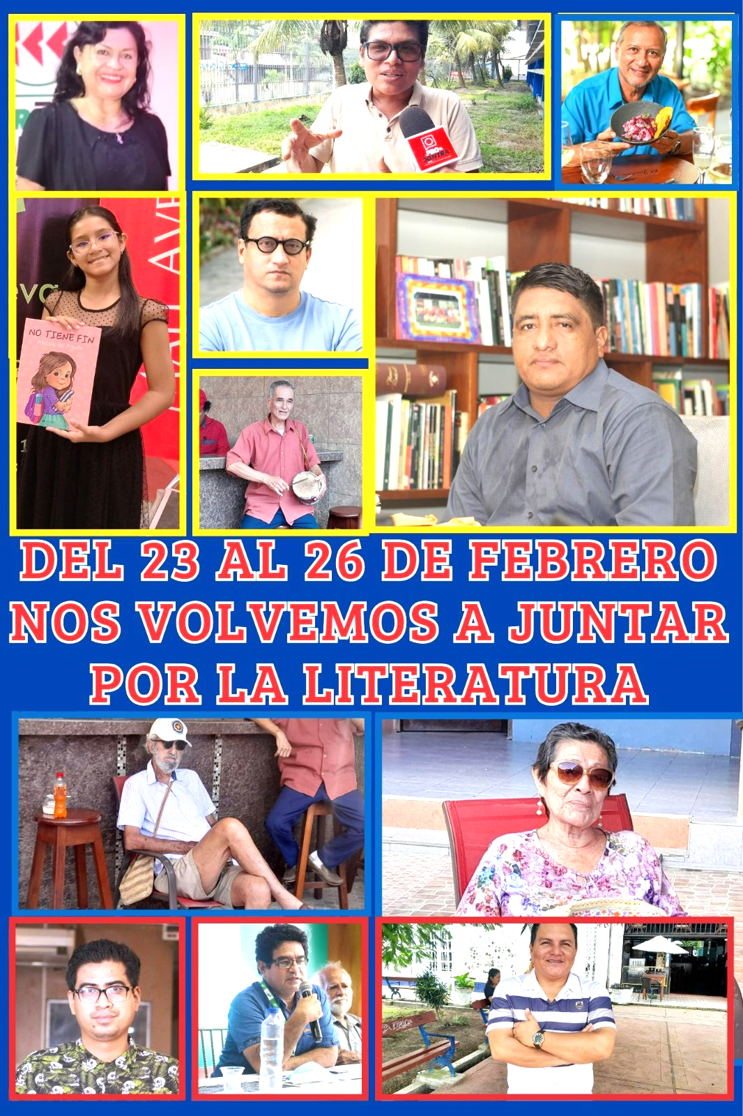 Durante cuatro días en Biblioteca Municipal “Joaquín García” y “El Cauchero” cuatro días leeremos, bailaremos, cantaremos, le daremos alegría al corazón. Gracias al apoyo de FACACENIT, Los Portales, Estación de Servicios San Antonio, Hotel Marañón, Hotel Samiria, Instituto Reyna de Las Américas, El Cauchero, Filomeno y su caja chola, Confort Amazónico Hotel, Estudio Tafur Boullosa, Estación de Servicio Sabina, Notaría Vela Marroquín.