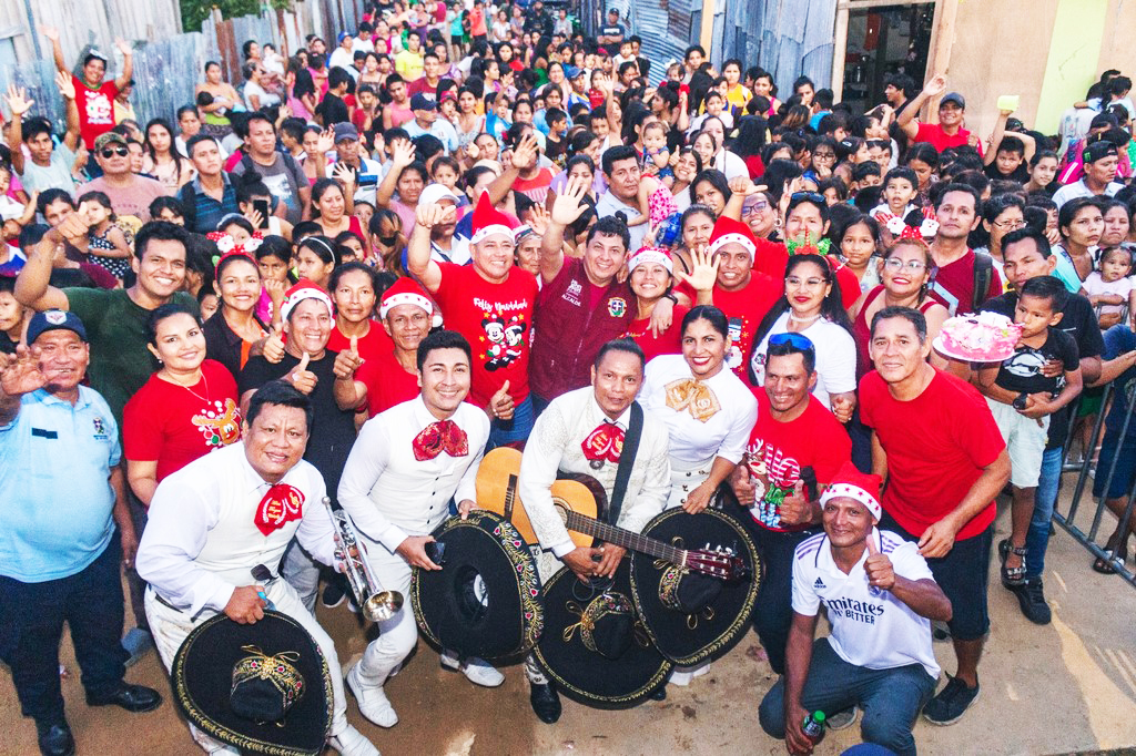 Debiendo mencionar, que la chocolatada navideña en el A.H Valle Encantado Km 10, contó con la presencia del primer regidor Diego Bolívar y la Miss San Juan Dayanara Hidalgo, quienes compartieron con los niños y las familias del lugar.