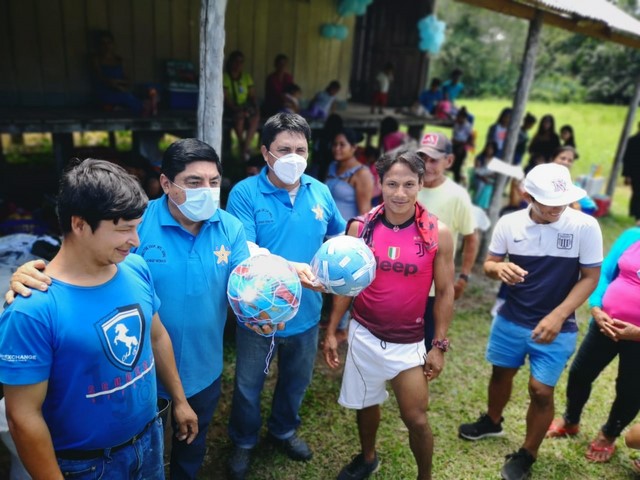 Asimismo la delegación se dirigió en deslizador hasta el Caserío Puerto Alegría para celebrar 100 años de fundación, las autoridades de la comunidad agradecieron al Ing. Donayre y al Dr. Monasí por ser los primeros representantes del GOREL en atender a este pueblo en sus 100 años de existencia, presentando verbalmente su solicitud comunal de saneamiento físico legal de todos los terrenos, contando con el apoyo gratuito de EconSciencia para hacer los trabajos necesarios para el Tupa y previos a las Inspecciones de Disafilpa y la Dral.