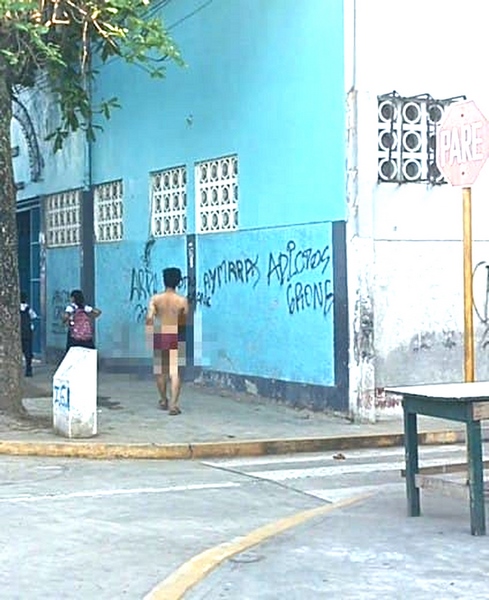 Cerca de las 6 de la mañana se levantó del lugar donde se encontraba y empezó a caminar de un lugar a otro completamente desnudo. Los niños, niñas y adolescentes que llegaban hasta el Colegio “María Parado de Bellido” fueron testigos de este lamentable espectáculo.