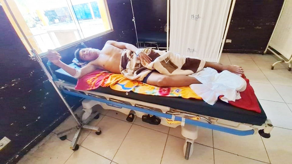 Ayer en horas de la mañana llegó evacuado el joven Alex Vázquez Vicente (27) desde el caserío Miguel Grau ubicado en Sarayacu, hasta el Hospital Regional de Loreto.