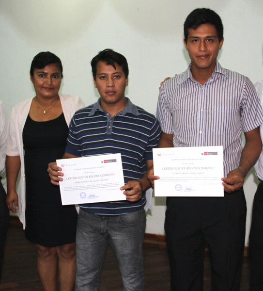 Ambos jóvenes forman parte de la convocatoria 2012, la primera de Beca 18 en Loreto, en la modalidad Ordinaria y ahora se encuentran realizando los trámites correspondientes ante su institución para obtener la constancia de egresado, para inmediatamente iniciar los trámites para obtener el Grado de bachiller. (MIPR)