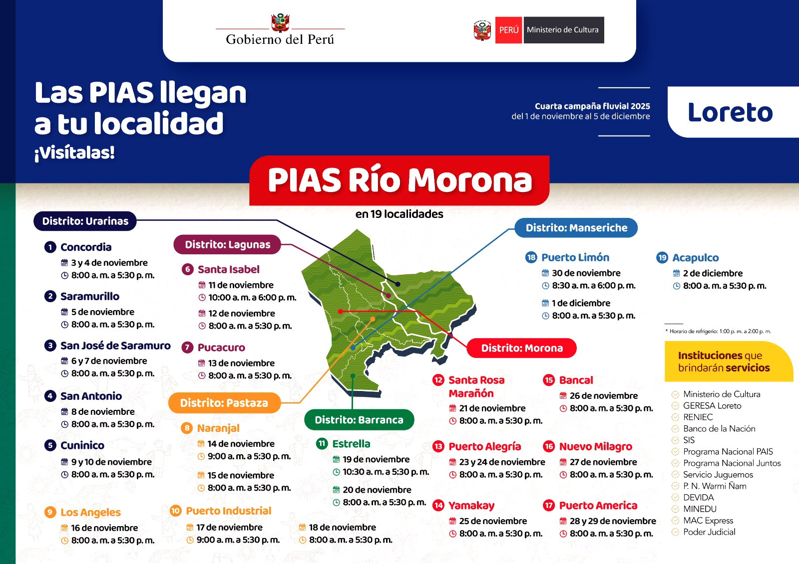 La presencia del Poder Judicial en estas campañas es posible gracias al trabajo articulado con el Programa Nacional PAIS del Ministerio de Desarrollo e Inclusión Social (MIDIS), que permite integrar esfuerzos del Estado para atender de manera integral a las poblaciones rurales y ribereñas.
