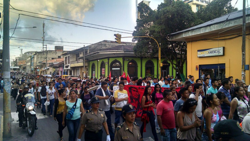 Ayer una gran cantidad de jóvenes iquiteños salieron a las calles en una marcha pacífica por la Derogatoria al Régimen Laboral Juvenil (conocida como Ley Pulpín). La concentración en el Aula Magna de la UNAP (calle Pevas cuadra 5), a partir de las 3 pm. y empezó la marcha a las 5 pm. con el recorrido hacia la Plaza de Armas.