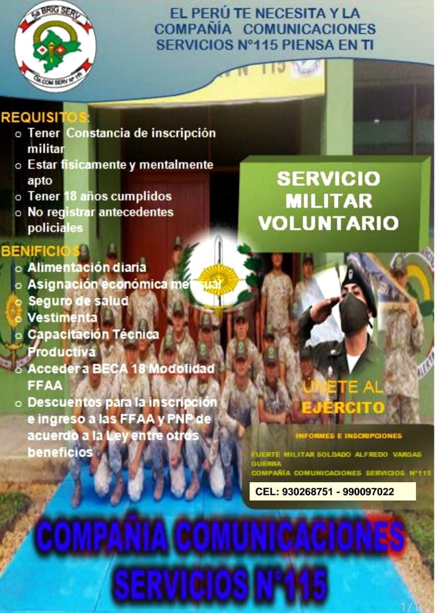En la ciudad de Iquitos, con fecha 14 de enero del 2022, en la CIA COM SERV N° 115 – FMSAVG se apertura el proceso de captación al servicio militar voluntario AF-2022.