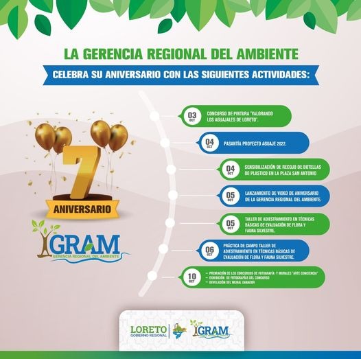 La Gerencia Regional del Ambiente – GRAM, está de aniversario y ha preparado una serie de actividades para que celebres con ellos.