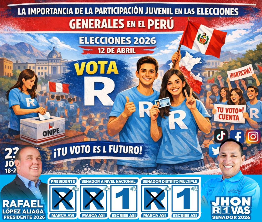 La juventud peruana tiene ante sí una oportunidad histórica para influir en el futuro político del país, con millones de jóvenes votando por primera vez y un ecosistema digital que transforma la participación política, el papel de las nuevas generaciones será decisivo; su participación activa no solo fortalece la democracia, sino que también redefine la relación entre la sociedad y la política en el Perú; en Renovación Popular con el próximo Presidente del Perú Ing. Rafael López Aliaga, y Mag. Jhon Rivas en el Senado por el distrito múltiple electoral, representando a la región Loreto, este sector tiene y tendrá una participación directa en la formación de este próximo gobierno, siendo el objetivo formar jóvenes profesionales para integrar esta reestructuración estatal del aparato público peruano, con nueva visión y reingeniería.