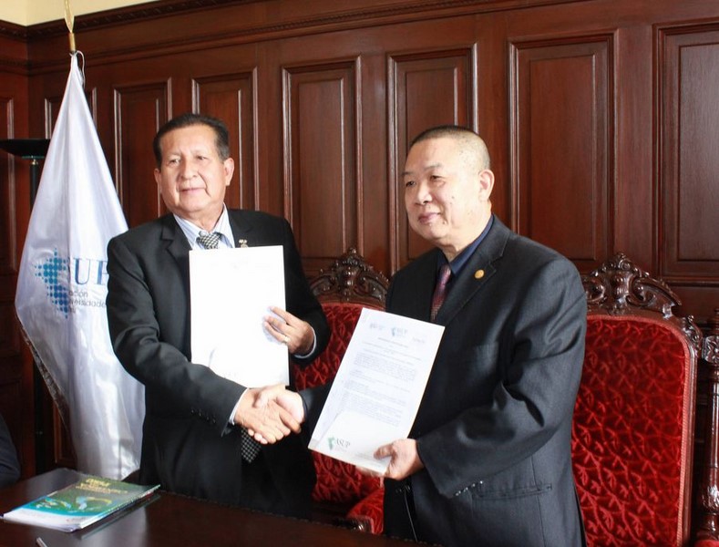 Un Memorándum de Entendimiento firmado en Lima por el rector de la Universidad Científica del Perú-UCP y el presidente de la Asociación Promotora de Colaboración China-Latinoamérica (APROCLA), confirma la importancia de la cooperación internacional para la integración de las naciones. El Dr. Juan Remigio Saldaña Rojas y el señor Jau Kin Siu de nacionalidad china, firman este histórico documento que tendrá una vigencia de 5 años, desde el 17 de agosto del 2015 hasta el 17 de agosto del 2020, demostrando que la UCP es una universidad amazónica con proyección internacional.