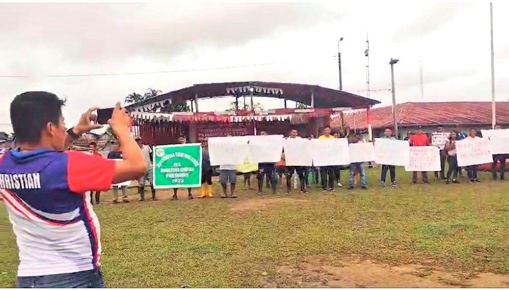 Se pudo conocer que los Caciques de todo el distrito de Teniente Manuel Clavero, se encuentran realizando marchas de protesta contra los cocaleros debido a que con los químicos que preparan la coca, están matando todas las especies de quebradas y cochas donde están instalados los campamentos a lo largo de todo el Putumayo