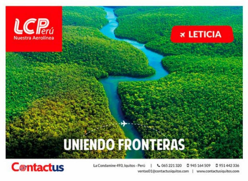 Siempre apostando por el Perú, la aerolínea peruana LC Perú, pone a disposición de sus clientes en la región oriental del país, su primer vuelo internacional entre Iquitos y Leticia – Colombia, representando un enlace aéreo importante y esperado por muchos años.