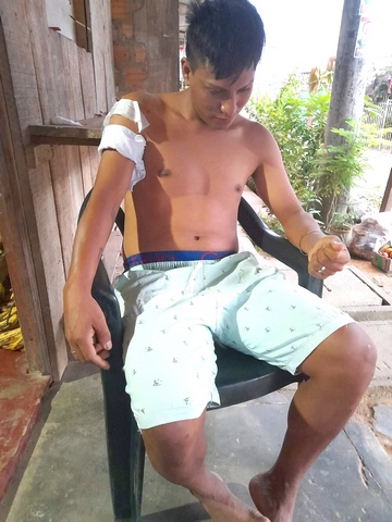Los delincuentes, porque de otra forma no se los puede llamar, empezaron agredirle con golpes de puños y patadas, no contentos con eso, sacaron un arma blanca y le propinaron un corte a la altura del brazo derecho cerca al hombro.