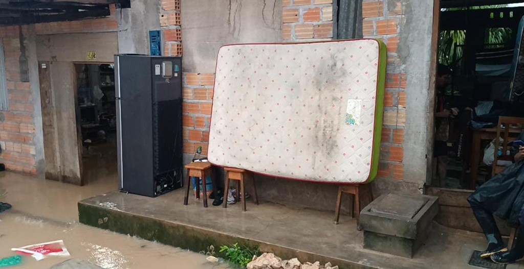 Por la excesiva cantidad de agua, varios de los artefactos y muebles de los moradores de la zona quedaron afectados, muchos de ellos tuvieron que sacar sus pertenencias a las veredas de las casas vecinas para mantenerlos alejados de las aguas.
