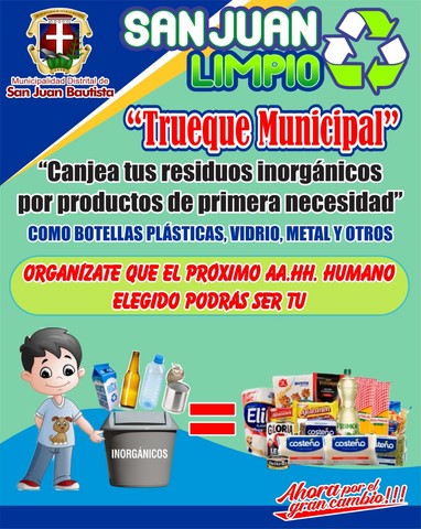 - La municipalidad de San Juan Bautista, mediante la Gerencia de Residuos Sólidos, está convocando al poblado del Asentamiento Humano Pacarán en la zona de Santo Tomás, a una actividad denominada Trueque Municipal.