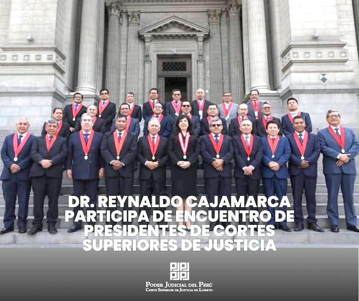 El presidente de la Corte Superior de Justicia de Loreto, Dr. Reynaldo Elías Cajamarca Porras, junto a la Lic. Gilda Eloísa Hidalgo Chávez, jefe de la Oficina de Administración Distrital, participan en la “Primera Reunión Anual 2026 de Presidentes y Administradores de las Cortes Superiores de Justicia del Perú”.