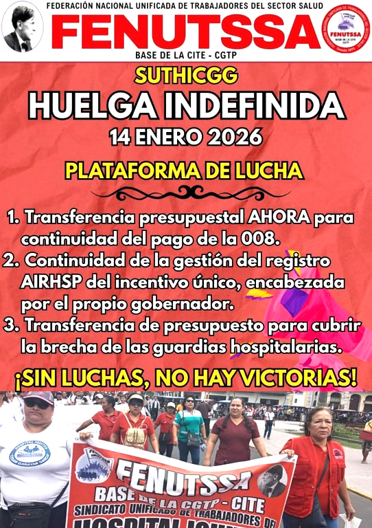 Cabe mencionar que Fenutssa también está afiliada a la CGTP, por lo que no se descarta que puedan hacerse presentes en el primer día de la huelga indefinida en el hospital Iquitos.